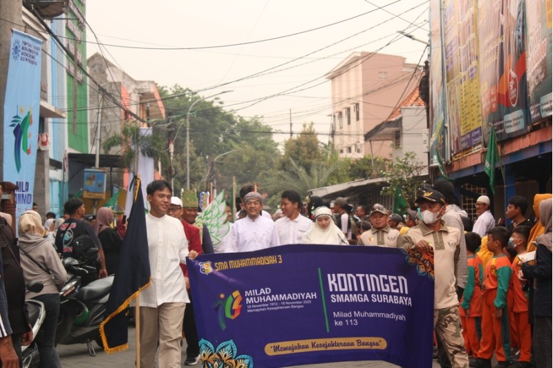 Pawai PCM Wonokromo Meriahkan Semarak Milad Ke-113 Tahun Muhamamadiyah dengan Semangat Kesejahteraan.